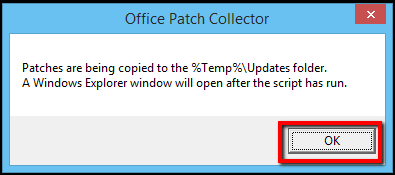 The script will now collect and copy all installed updates for Visio into %Temp%\Updates