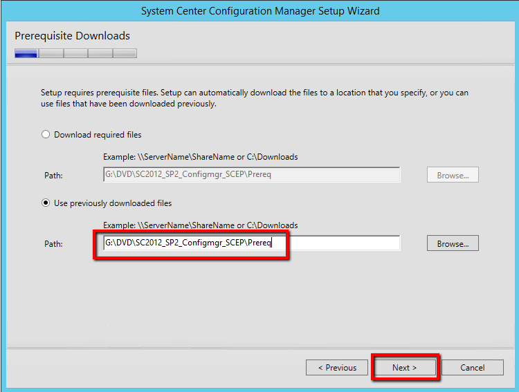 After downloading the prereq files your ready to upgrade the SCCM enviroment. Start the .\SC2012_SP2_Configmgr_SCEP\splash.hta as an administrator