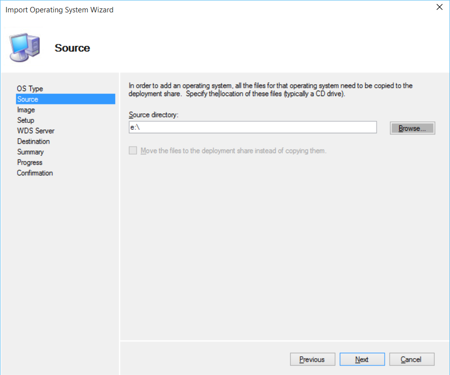 Enter the place for the Deployment Share