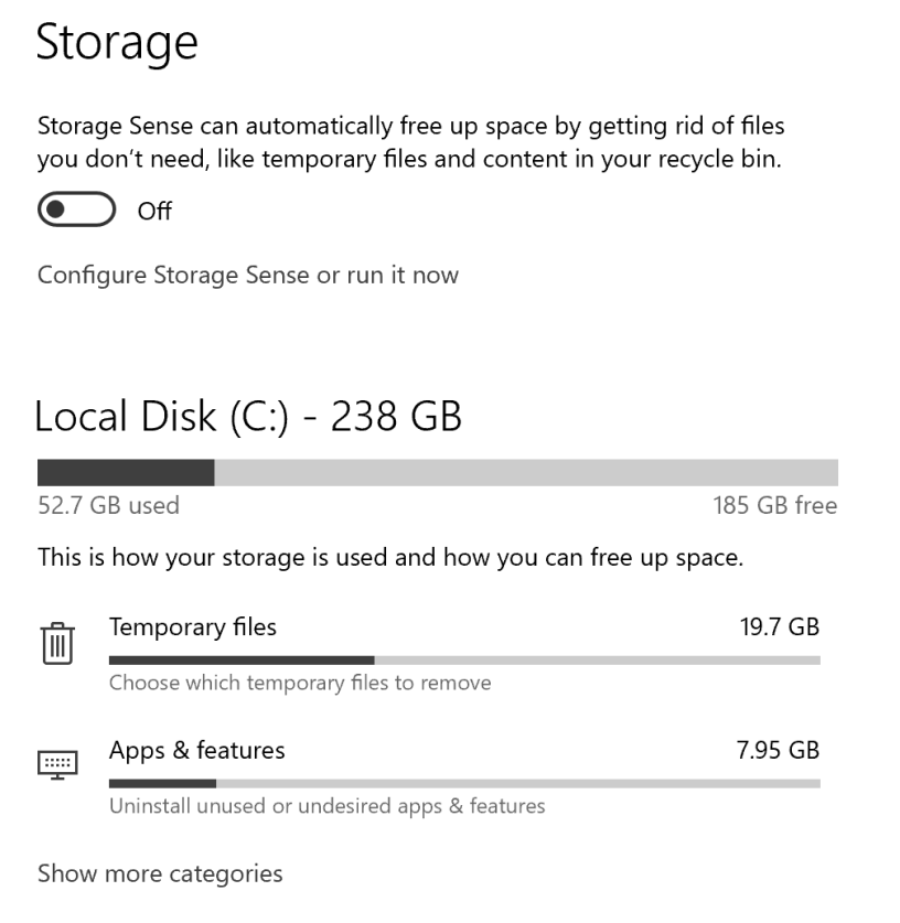 When Storage Sense runs, it can delete the user’s temporary files that are not in use.