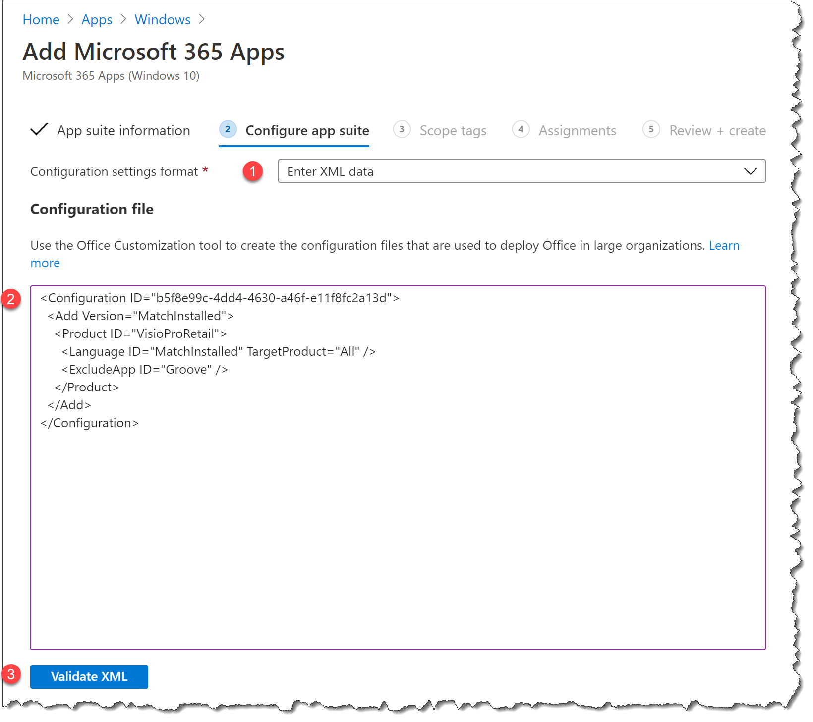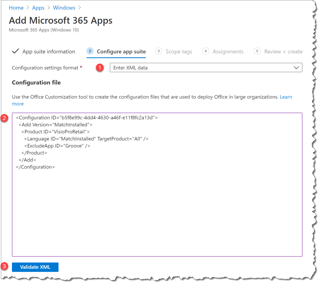 - Copy the XML data from : https://go.microsoft.com/fwlink/?linkid=2100547