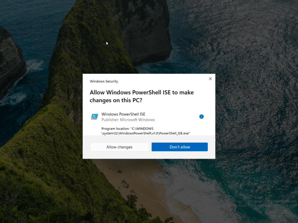 You will see a new and improved Windows Security prompt that are asking you to Allow changes, you are also getting the information about the installer, the publisher, if you click on the information icon you also gets the command line that will be executed.