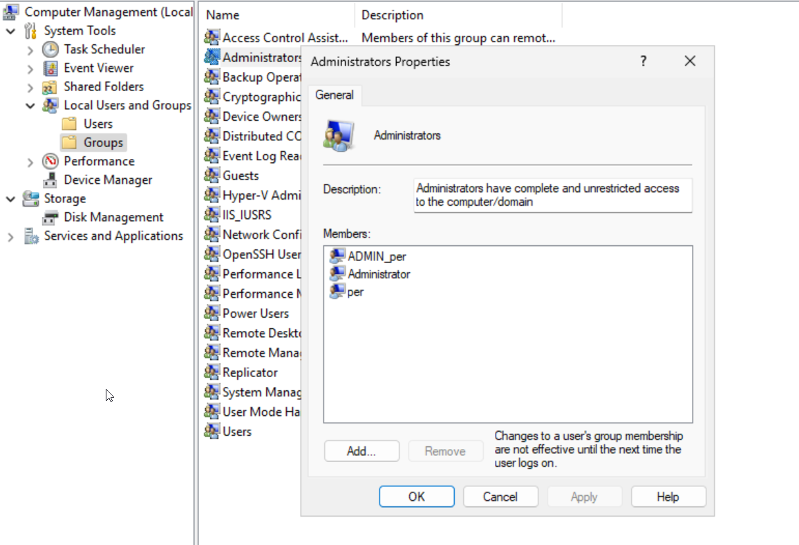 Lets say for a second that you do not put the virtual admin account back into the local administrator group an restart your device.