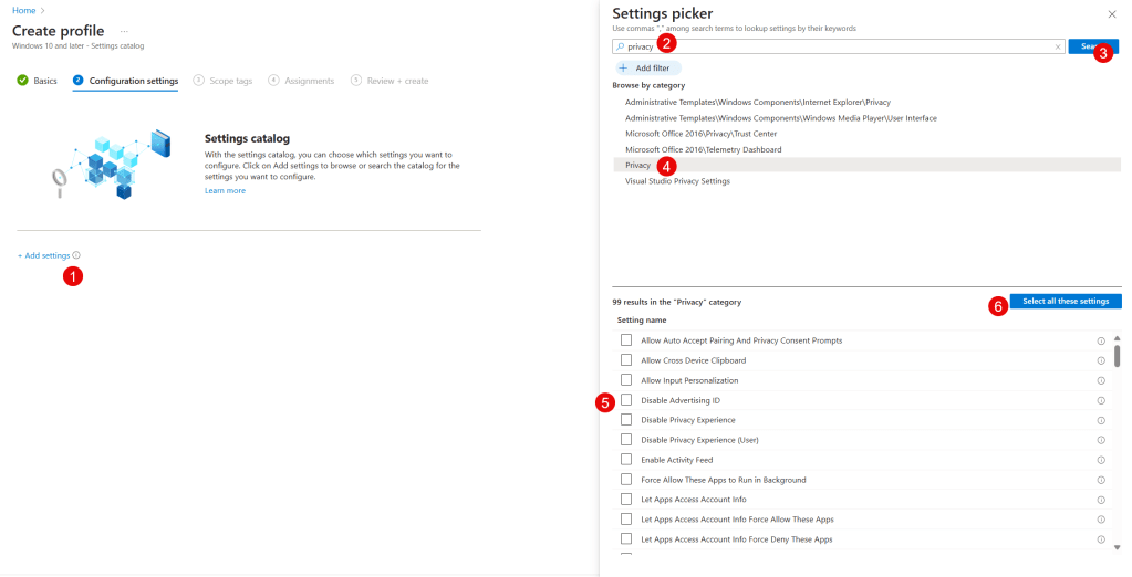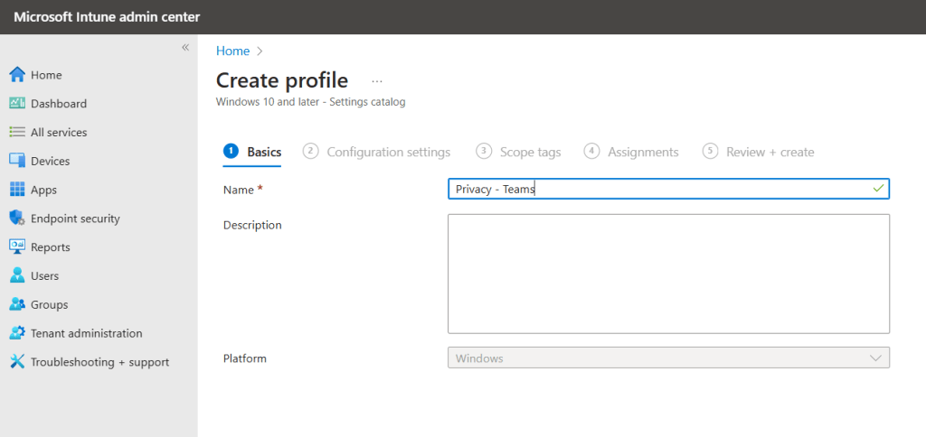 Start Microsoft Intune Admin Center – Device – Windows – Configuration – Create – New Policy